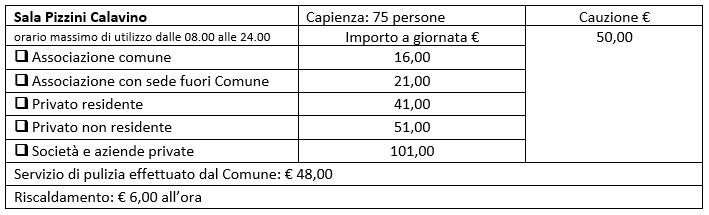 Il Comune concede l’uso della Sala Pizzini Calavino secondo quanto previsto dal regolamento comunale per la concessione e locazione di immobili
