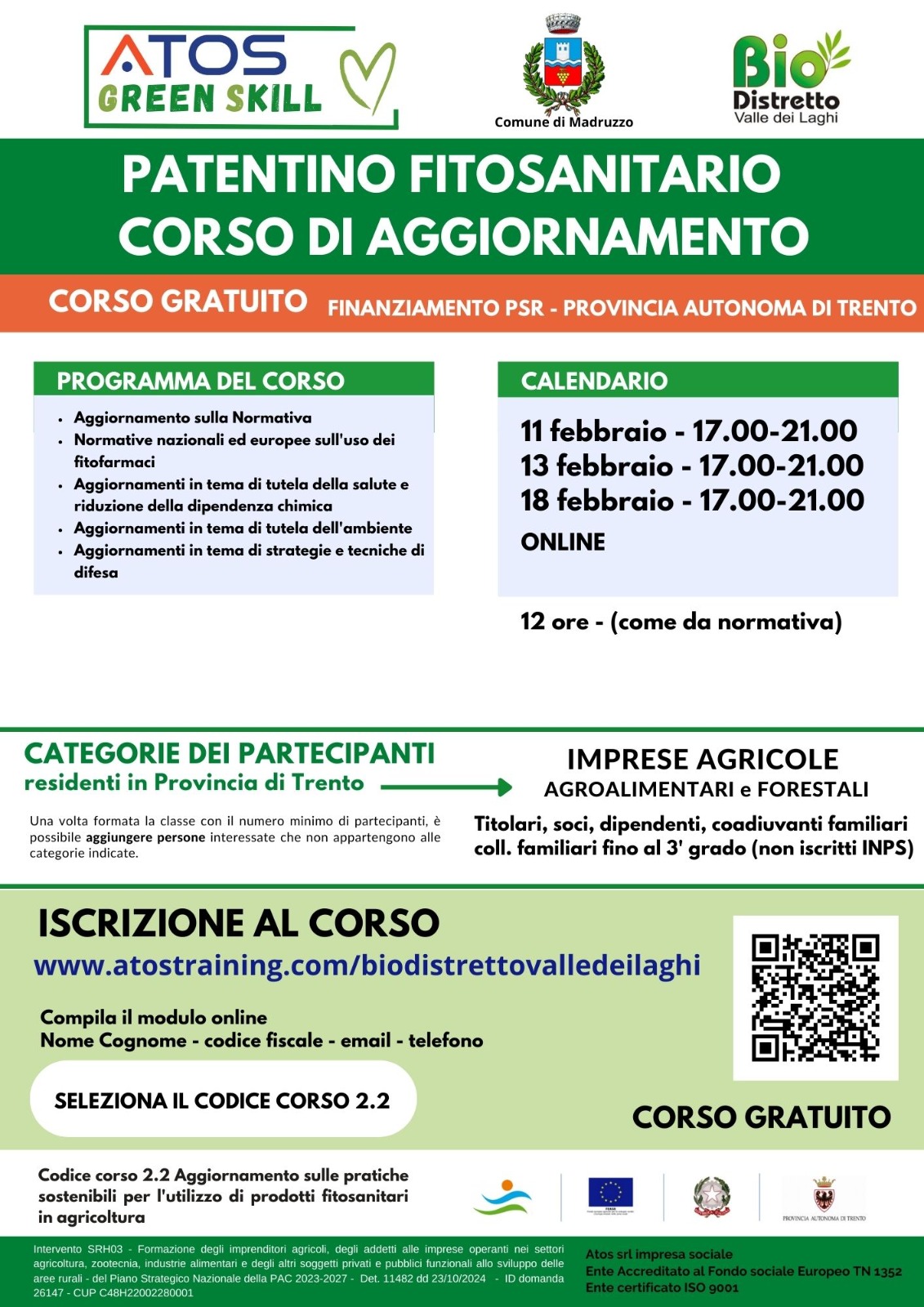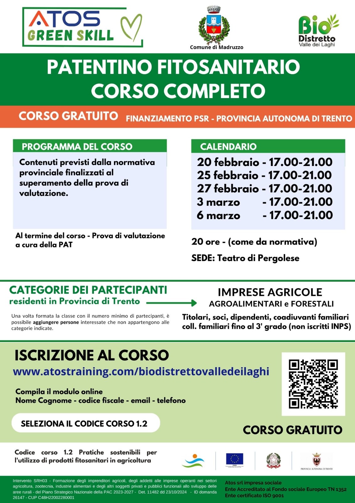 I corsi sono organizzati dall'ente formatore Atos in collaborazione con il Comune di Madruzzo e il Biodistretto Vallelaghi.